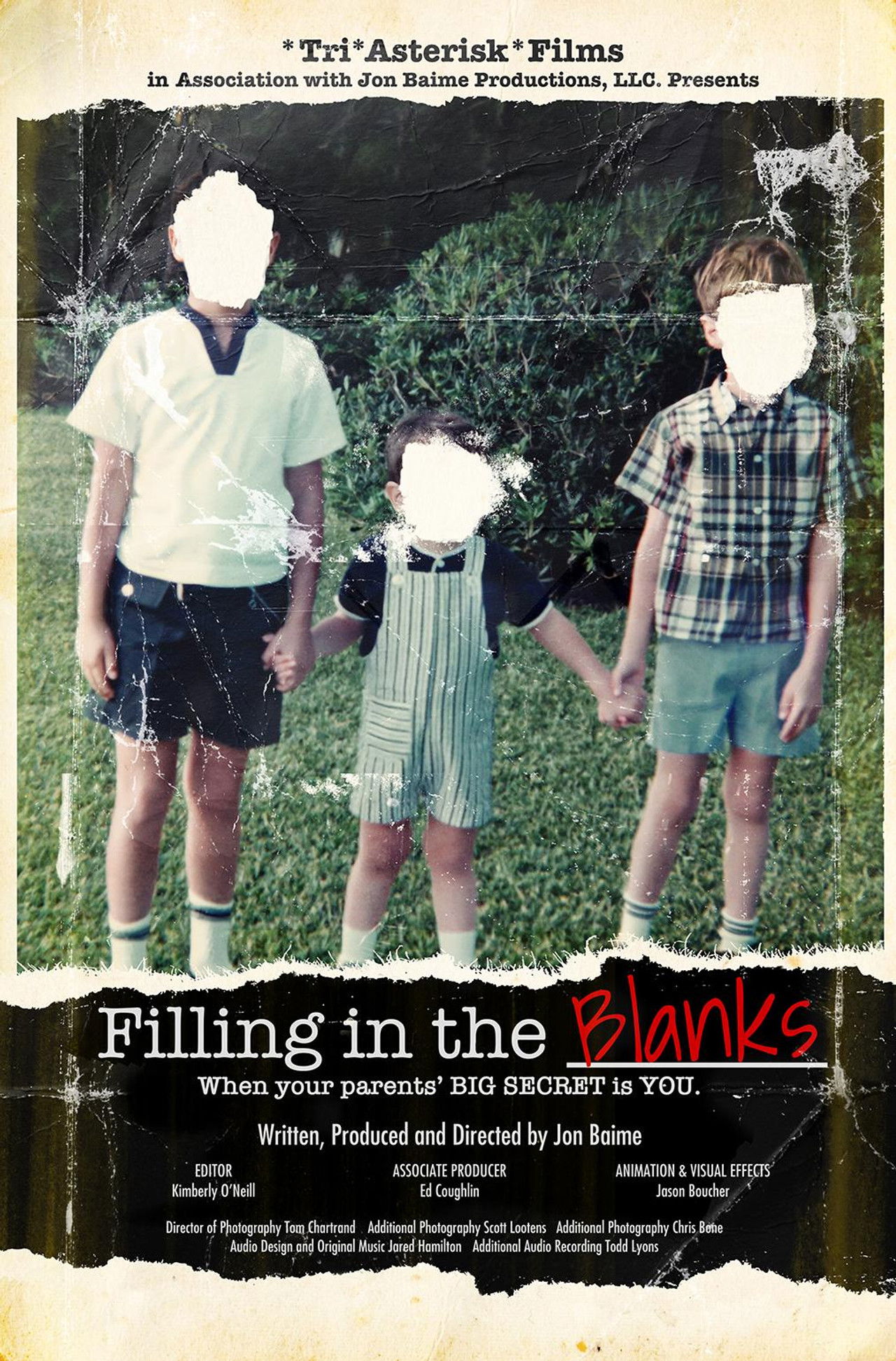 Where do I come from? For some, the question has a simple answer -- for others, the truth can be much more complicated. With the rise in popularity of at-home DNA tests, it's now easier than ever for people to uncover their family history and, sometimes, things their parents wish would stay buried. Interested in learning more about his family heritage, director Jon Baime took an at-home DNA test and uncovered a family secret that has been hidden for half a century. Featuring in-depth interviews with Jon's siblings as well as a treasure trove of family photos and films spanning 70 years, FILLING IN THE BLANKS takes audiences on a journey as Jon explores the meaning behind his discovery and expands on what it means to be family.
