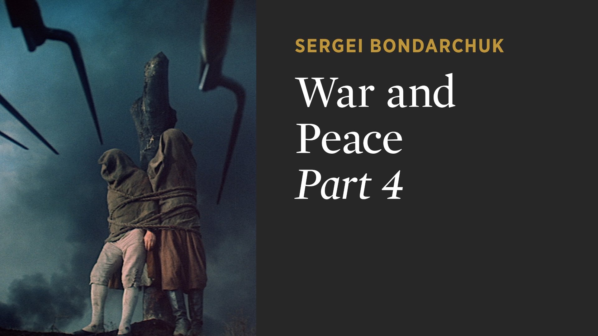 As Moscow is set ablaze by the retreating Russians, the Rostovs flee their estate, taking wounded soldiers with them, and unbeknownst to them, also Andrei. Pierre, dressed as a peasant, tries to assassinate Napoleon but is taken prisoner. As the French are forced to retreat, he is marched for months with the Grande Armée, until being freed by a raiding party. The French are defeated by Kutuzov in the Battle of Krasnoi. Andrei is recognized and is brought to his estate. He forgives Natasha on his deathbed. She reunites with Pierre and they marry as Moscow is being rebuilt.
