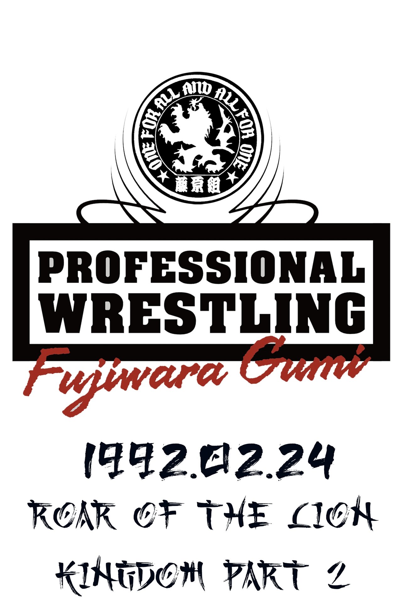 Pro Wrestling Fujiwara Gumi was a shoot style professional wrestling promotion based in Tokyo, Japan. This event was held on February 24th, 1992 at Korakuen Hall in Tokyo, Japan and presented the following matches: Wellington Wilkins Jr. vs. Lato Kiraware, Bart Vale vs. Kazuo Takahashi, Yoshiaki Fujiwara vs. Yusuke Fuke, Minoru Suzuki vs. Jerry Flynn & Wayne (Ken) Shamrock vs. Masakatsu Funaki.