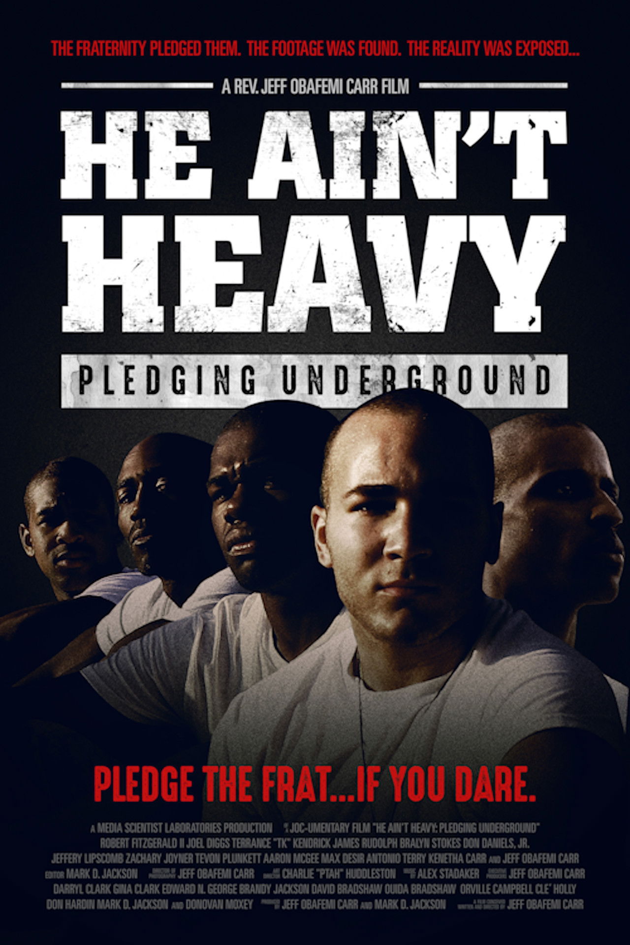 In the Spring of 2011, five young College Students began the pledge process for a prestigious African-American Fraternity. A Graduate Film Student and fraternity member captured their journey on video as part of an academic documentary that was never meant to be shared outside of the fraternity. Weeks into the process, an early morning 911 call led Police to a high school football field, where they discovered the body of one of the Pledges. Months later, the damning footage from video cameras, cell phones and campus security cameras found its way to Director Rev. jeff obafemi carr, who amalgamated it into the explosive movie titled He Ain't Heavy.