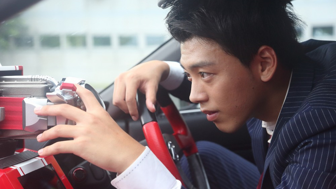 Shinnosuke Tomari is a former elite police officer in the Metropolitan Police who, after an event that traumatized one of his colleagues, has been "demoted" into the Special Investigations Division, a group that looks into the stranger happenings in the city, particularly the "Heavy Acceleration" events that leave people unable to move that the public have termed the "Slowdown." When he is chosen by the Drive Driver and Tridoron, Shinnosuke transforms into Kamen Rider Drive and is tasked with battling the Roidmudes who wish to take over the world by eliminating humanity.