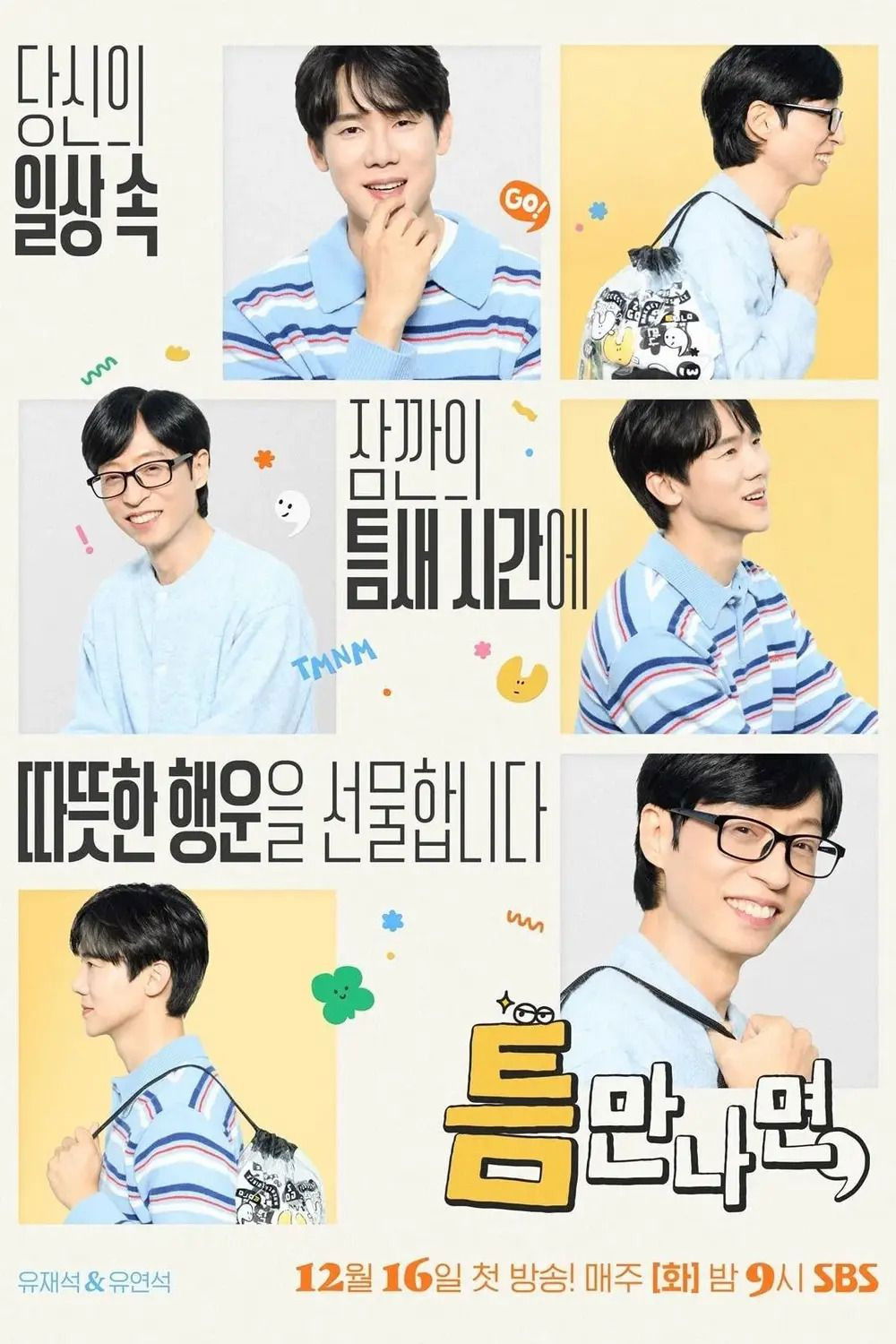 Yoo Jae-suk and Yoo Yeon-seok will go around visiting ordinary people during their free time, aiming to spread a little luck into their lives. The two ...